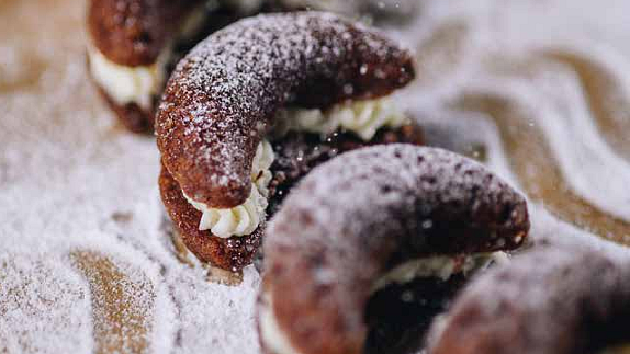 Křehké kakaové rohlíčky podle Kamily Nývltové jsou tím pravým cukrovím pro sváteční stůl. Upečené rohlíčky slepíte krémem pomocí ozdobné špičky, která připomíná krajku. Na závěr rohlíčky pocukrujte a vychutnejte si je s těmi nejbližšími.
