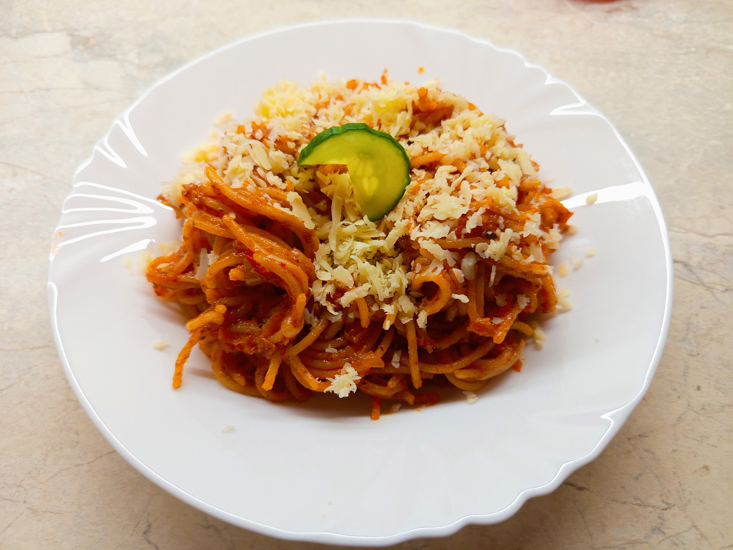 Krok 7: Špagety podáváme sypané strouhaným sýrem.