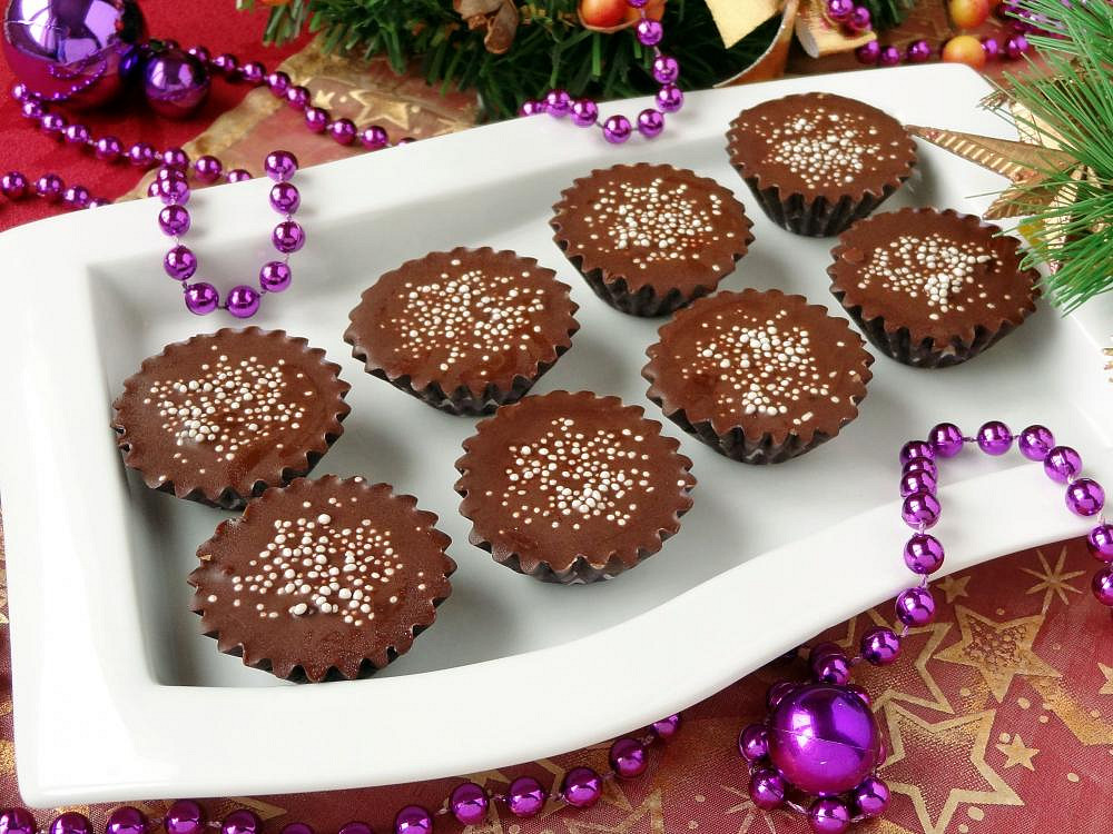 Krok 3: Do každého košíčku vlijeme malé množství čokolády, rozložíme ji po okrajích, vložíme do lednice a necháme ztuhnout.
