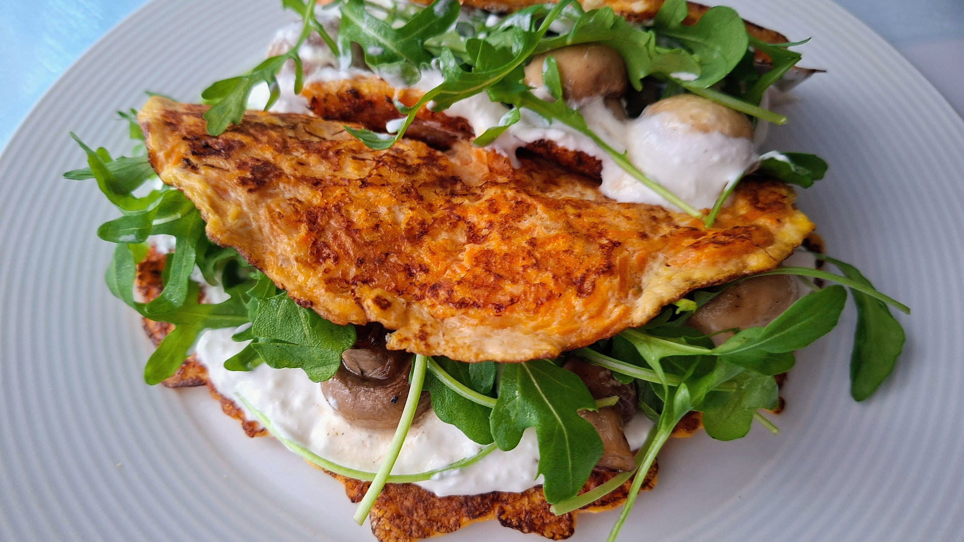 Placky z mrkve a sýru jsou bezlepkové a také nízkokalorické. Jsou tak vhodné i do různých diet. Nastrouhanou mrkev se sýrem spojí vajíčko a na pánvi směs orestujeme. Placku pak naplníme jogurtovou náplní, orestovanými žampiony a rukolou.