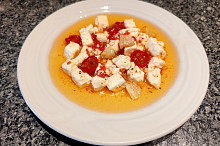Nakládaný sýr s pečenými rajčátky a česnekem