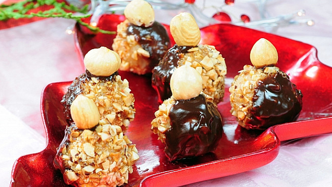 Krok 6: Kuličky nakonec ozdobíme oloupaným lískovým oříškem.