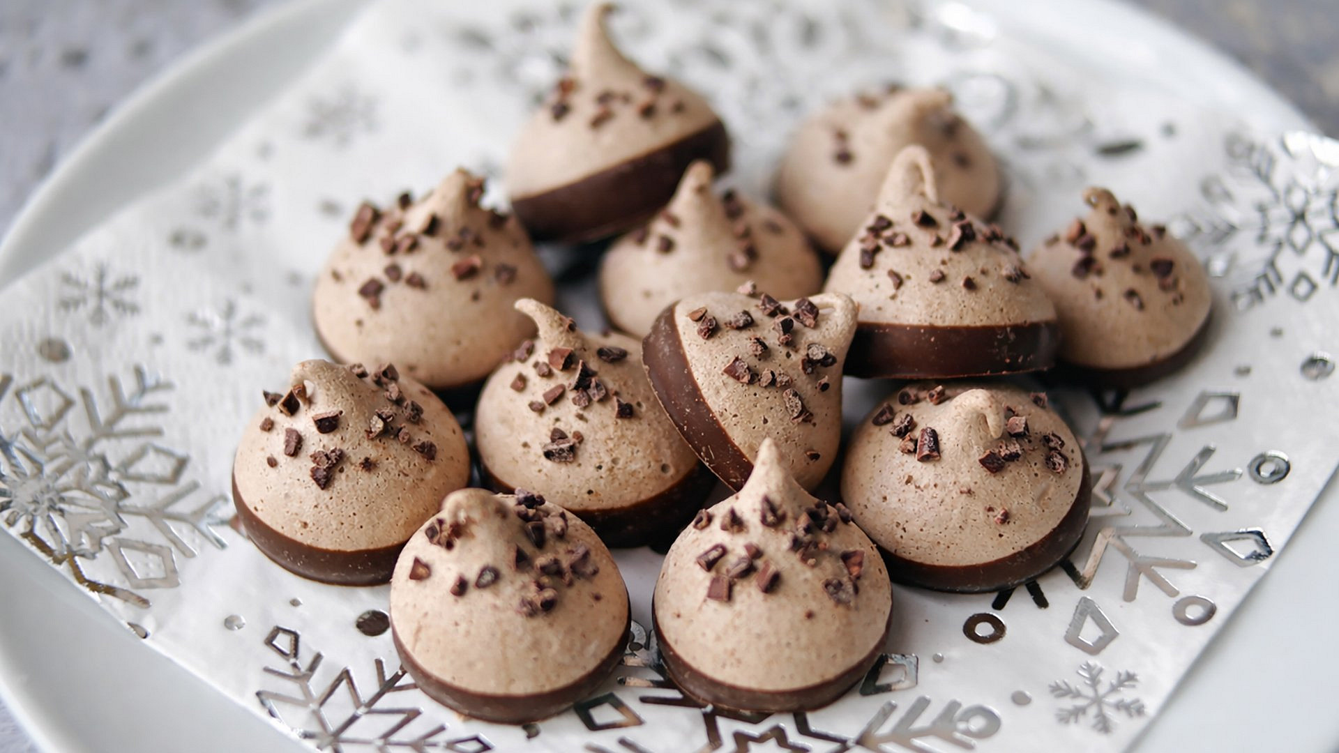 Netradiční bílkové cukroví potěší každého milovníka kakaa. Kakaové pusinky jsou křehké, lehce křupavé a díky máčení v hořké čokoládě působí elegantně a moderně jako stylová alternativa ke klasickým sněhovým pusinkám.