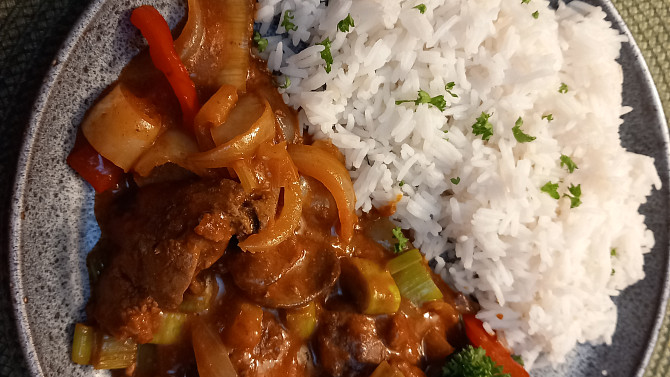 Marinovaná kuřecí játra v omáčce se zeleninou jsou rychlým a šťavnatým pokrmem plný výrazných chutí i barev. Játra necháme hodinu odležet v marinádě ze sójové omáčky, poté je orestujeme se zeleninou a nakonec dusíme v jemné medové omáčce.