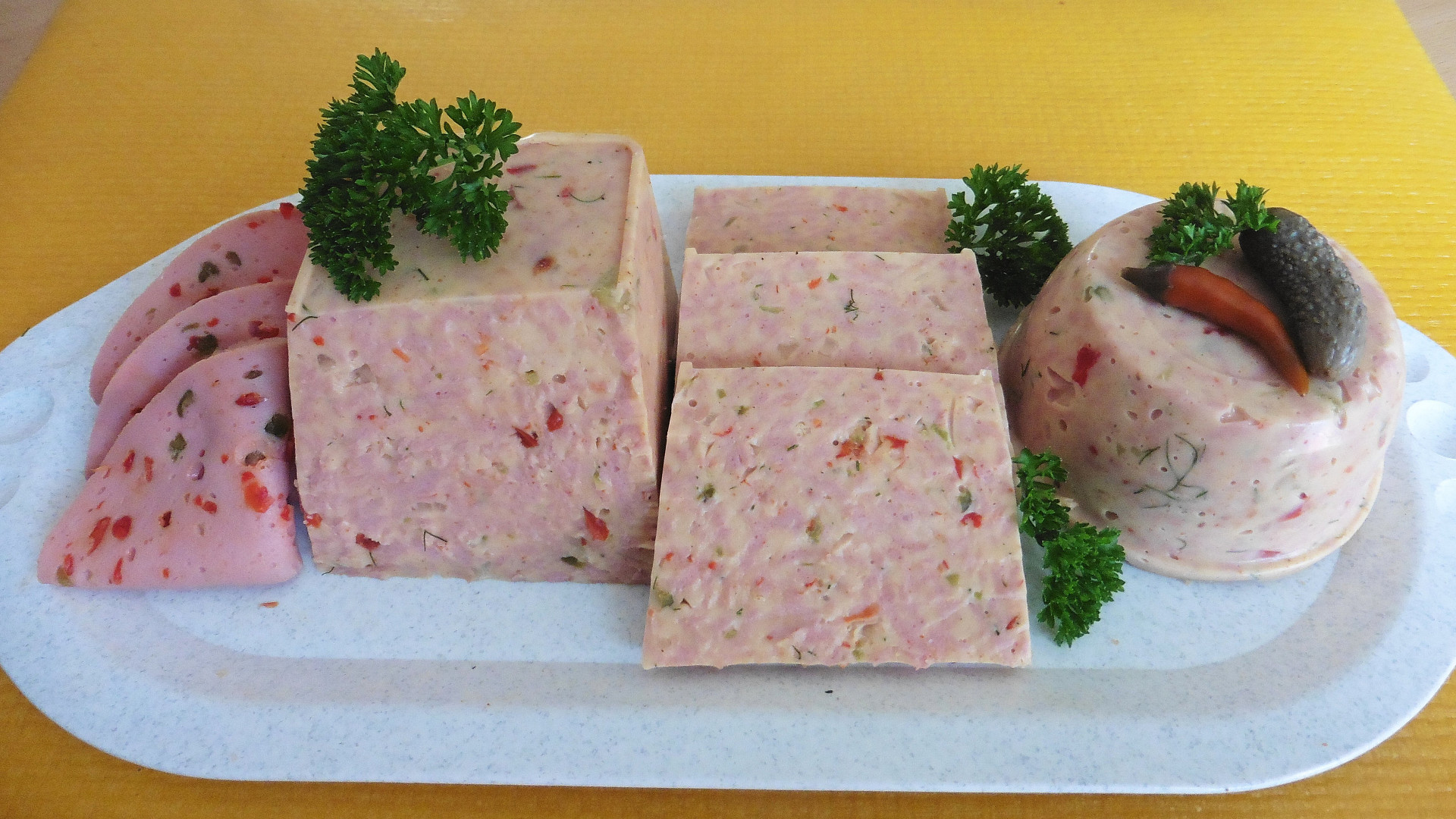 Nejsou řezy jako řezy. Pro milovníky slaných pochutin tu máme tip na salámové řezy. Základ tvoří měkký salám s kapií nastrouhaný nahrubo a doplněný o koření, pikantní česnek a aromatický kopr. Vše pak spojí nálev se želatinou, který dodá směsi potřebný tvar.