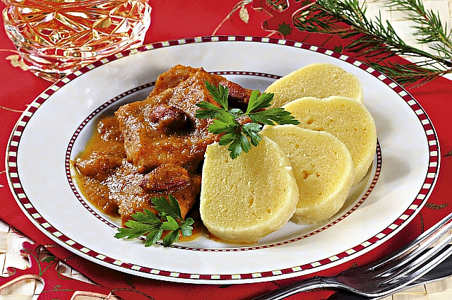 Krok 9: Kapra podáváme s bramborovým knedlíkem a ozdobíme čerstvou petrželkou.