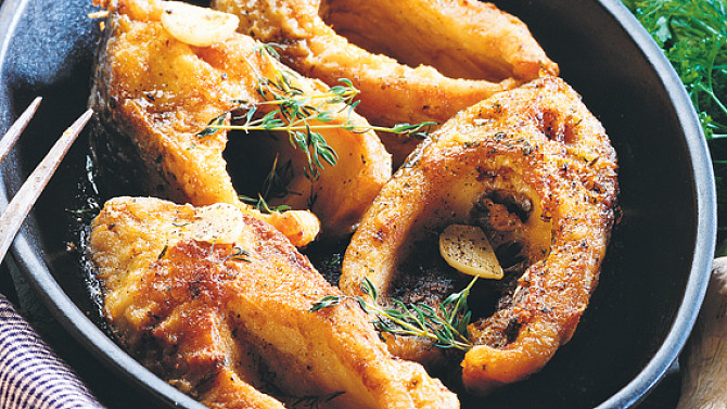Krok 6: Rybu podáváme s bramborovým salátem či vařeným bramborem.