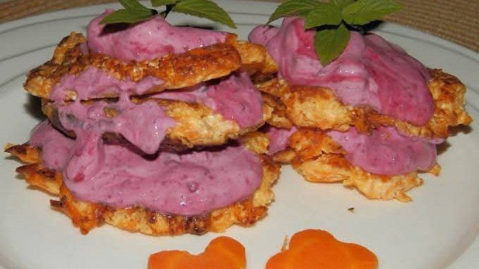 Tyhle lívanečky jsou díky mrkvi krásně vláčné. Část mouky je nahrazena mletými ořechy, které dávají těstu výraznější chuť. Přelité borůvkovou omáčkou chutnají skvěle k snídani i jako dezert po nedělním obědě.