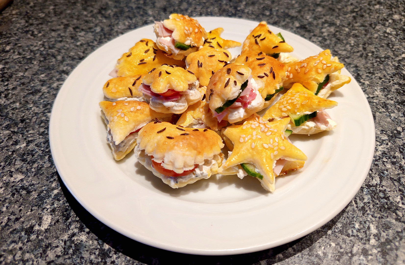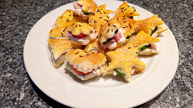 Nápadité jednohubky z listového těsta připravíte během chvilky. Stačí jen vykrájet z listového těsta oblíbené tvary, upéct je a naplnit pomazánkou, sýrem, šunkou a zeleninou. Křupnutí a bohatá náplň v každém soustu.