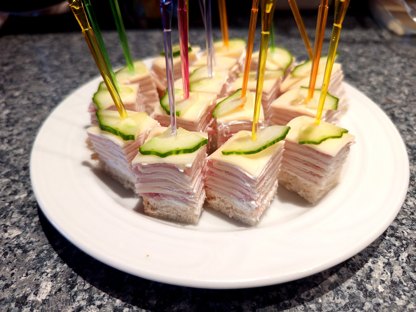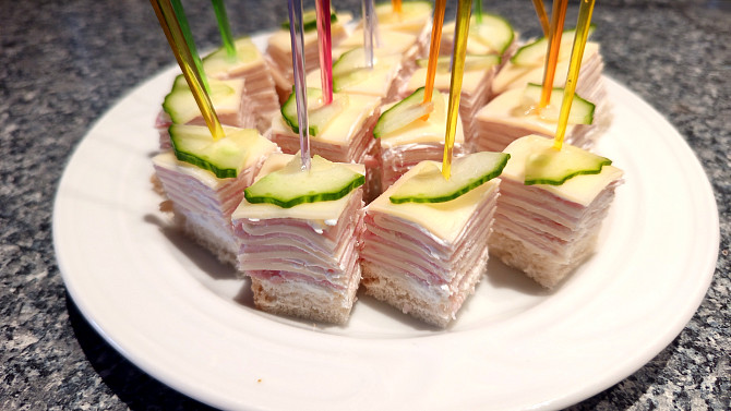Pokud máte rádi šunku a sýr, tyhle jednohubky si oblíbíte. Minimum pečiva a deset vrstev šunky a sýra pěkně na párátku a ani se neumažete. V kombinaci s křenovou pomazánkou jsou jednoduše dokonalé.