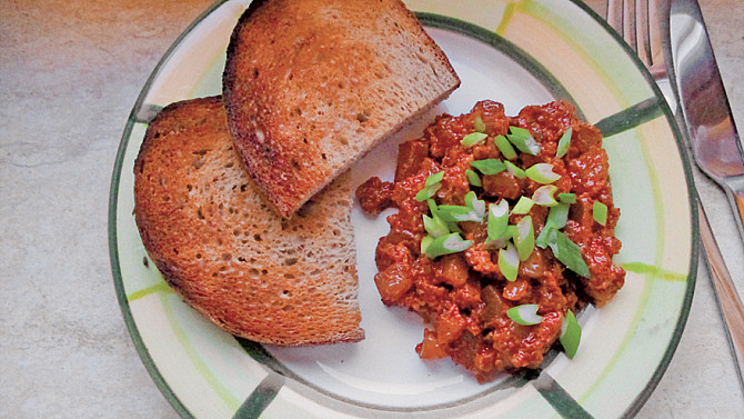 Krok 4: Tatarák rozdělíme na talíře, posypeme jarní cibulkou a podáváme s opečenými topinkami.