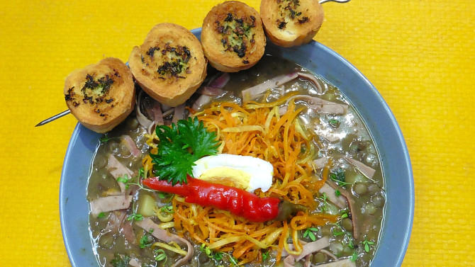 Sytá čočková polévka se šunkovými a mrkvovými nudličkami