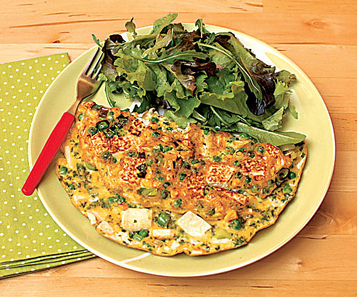 Vaječná omeleta s tofu, hráškem a kukuřicí