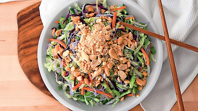 Salát z pekingského zelí na talíři hraje všemi barvami. Základ tvoří rýžové nudle s pořádnou porcí čerstvé zeleniny. O dochucení se postará limetková šťáva, čerstvý koriandr a křupavé nasekané arašídy. Přineste kousek Asie k vám domů.