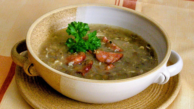 Klasická čočková polévka s opečenou klobásou