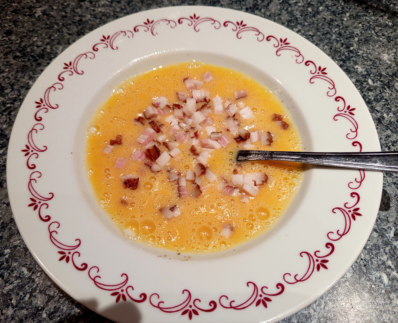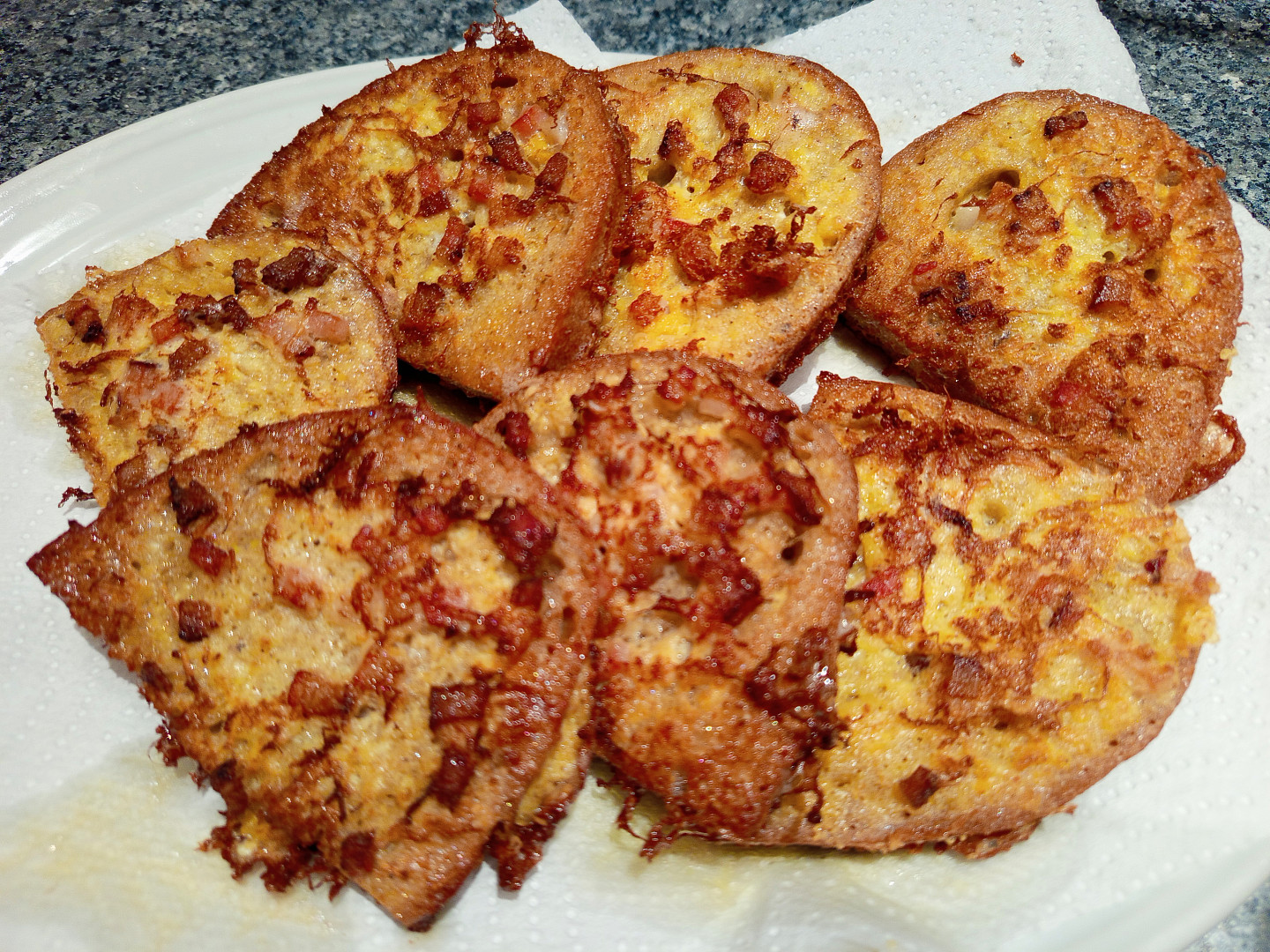 Starý chleba v hořčicovém kabátku se slaninou