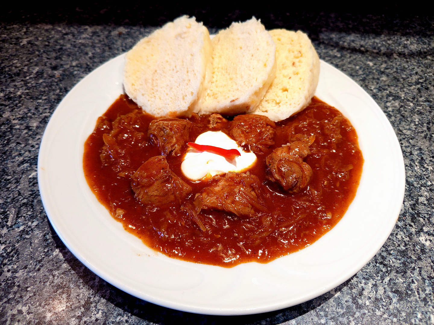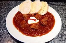 Segedínský guláš z plecka s uzenou paprikou a zakysanou smetanou