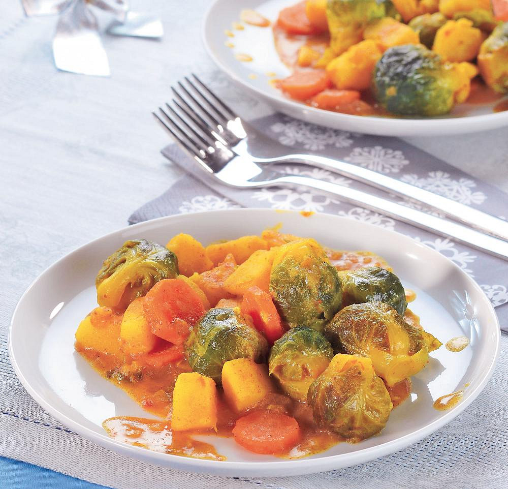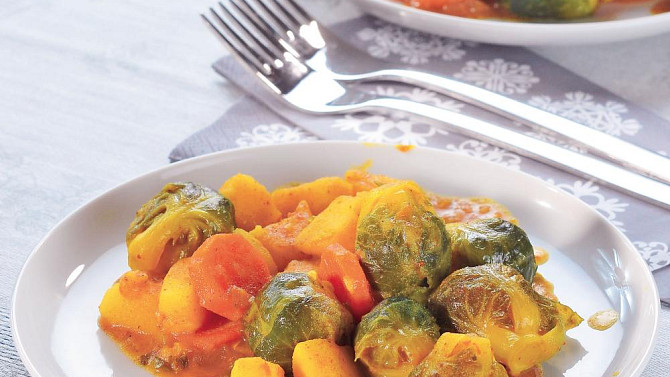 Růžičková kapusta je oblíbená zimní zelenina. Vyzkoušejte z ní připravit toto výborné a hřejivé jídlo s vůní kari koření. Ke kapustě přidejte také mrkev a brambory. Vznikne výživné a zároveň lehké bezmasé jídlo, které jistě oceníte.
