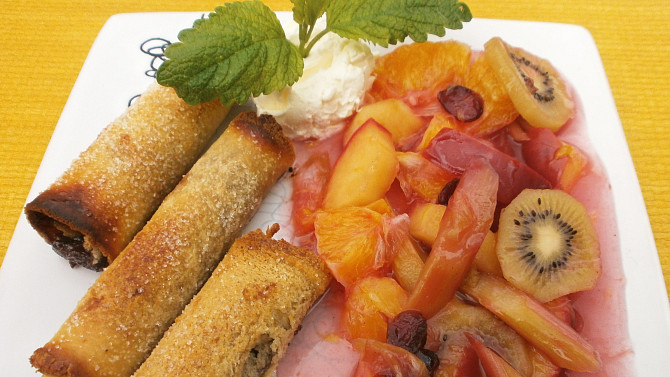 Krok 7: K rolkám přidáme vychlazené ovoce a třeba i šlehačku a podáváme.