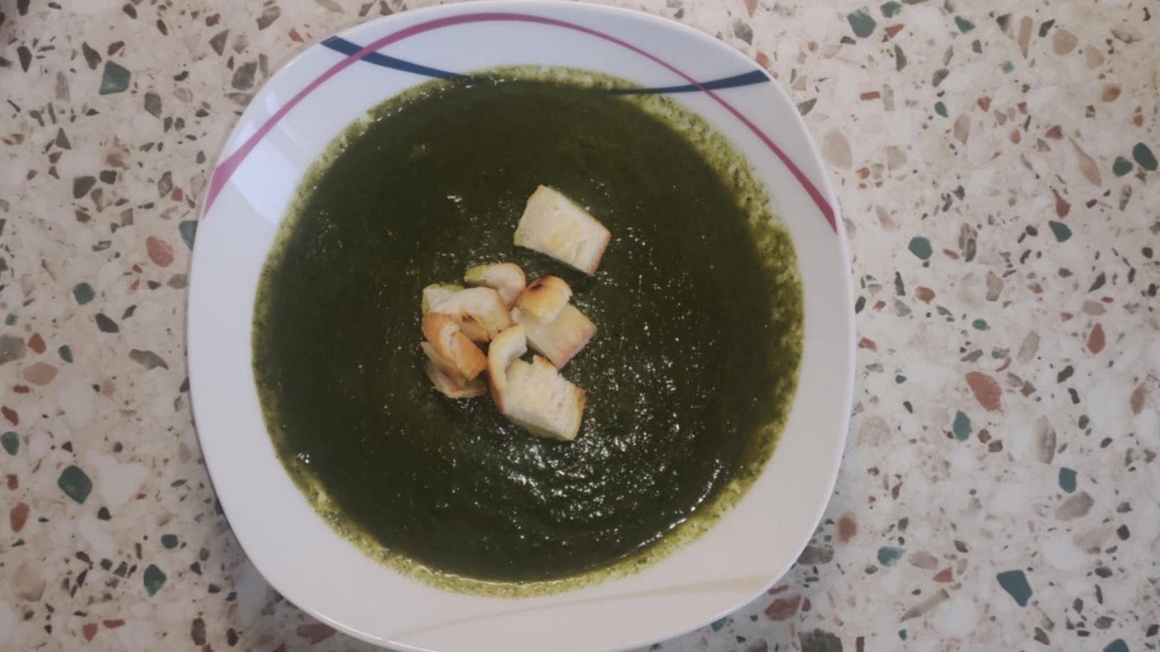 Krémová špenátová polévka je velmi snadná na přípravu. Díky vývaru, česneku a mléku bude polévka po rozmixování nádherně krémová a plná chutí. Na závěr přidáváme krutony z rohlíku, který opékáme na másle dozlatova a získá díky tomu lehce oříškový nádech.