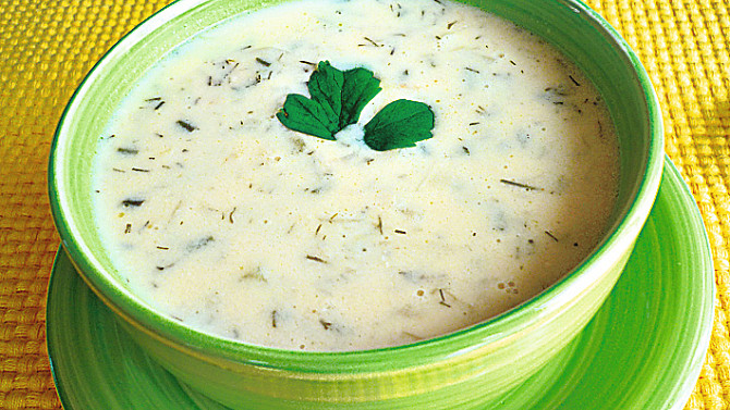 Krok 3: V acidofilním mléku rozmícháme mouku a vlijeme do hrnce. Nakonec přidáme uvařené kroupy, okapaný kopr a ještě alespoň 15 minut provaříme.