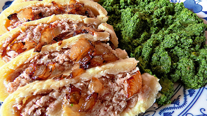 Bramborový závin s uzeným masem
