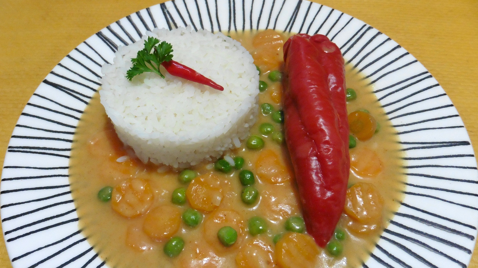 Plněné papriky obvykle podáváme k rajské omáčce. Zkuste připravit variantu plněných paprik se smetanovo-zeleninovou omáčkou. Papriky jsou naplněné směsí z mletého masa, omáčka je jemná a lehce nasládlá díky mrkvi a hrášku. Jak příloha se nejlépe hodí rýže.