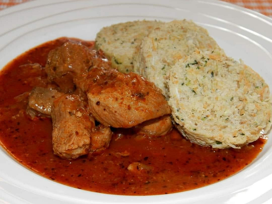 Vepřové maso a zeleninový knedlík (vhodné pro diabetiky a dělenou stravu)