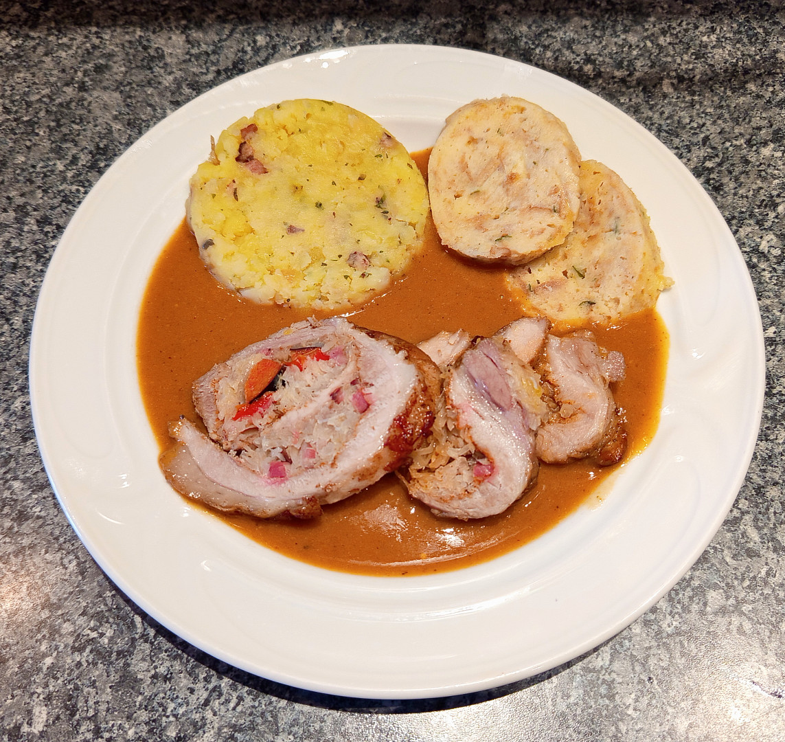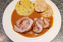 Bůčková roláda plněná zelím a omáčka z pečeného zelí