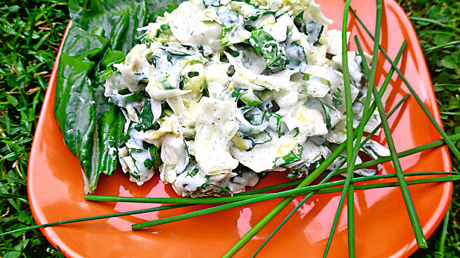 Zeleninový salát z hlávkového zelí, pórku, římského a ledového salátu chutná nejlépe dobře vychlazený. V lednici se zelenina krásně spojí se smetanovo-hořčičným dresinkem. Podávat ho můžeme s kouskem pečiva nebo jako přílohu k hlavnímu jídlu.