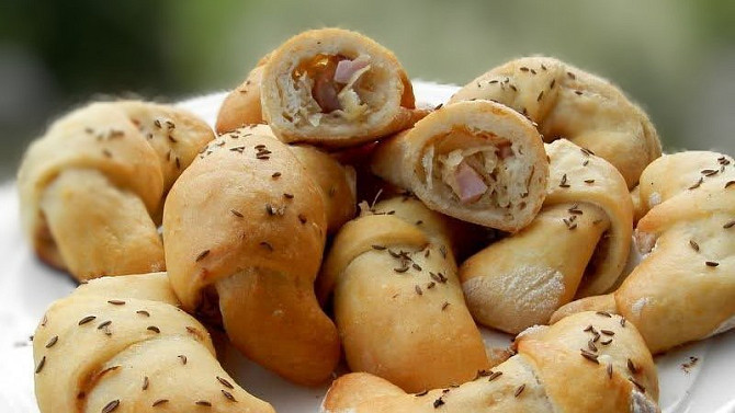 Voňavé rohlíčky z kynutého těsta, plněné směsí dušeného kysaného zelí s jablkem a uzeným masem, vás okouzlí svou vůní i chutí a stanou se originálním pohoštěním na oslavy i oblíbenou večeří pro celou rodinu.
