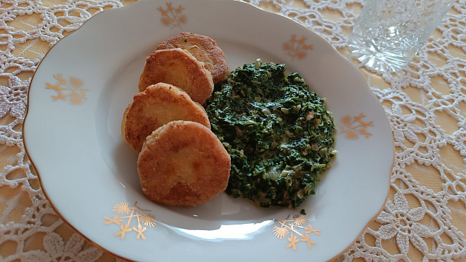 Placičky z bramborové kaše se smetanovým špenátem