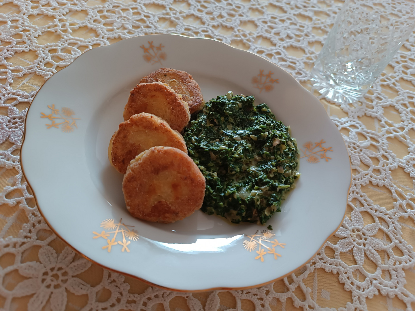 Placičky z bramborové kaše se smetanovým špenátem