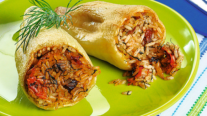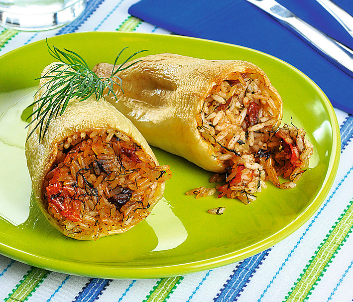 Zapečené papriky plněné rýží s koprem, mátou, cibulí a rajčaty příjemně osvěží jídelníček. Hodí se jako studený předkrm, lehká večeře i sytější svačina. Příprava je jednoduchá a výsledný pokrm zaujme už při prvním soustu.