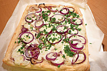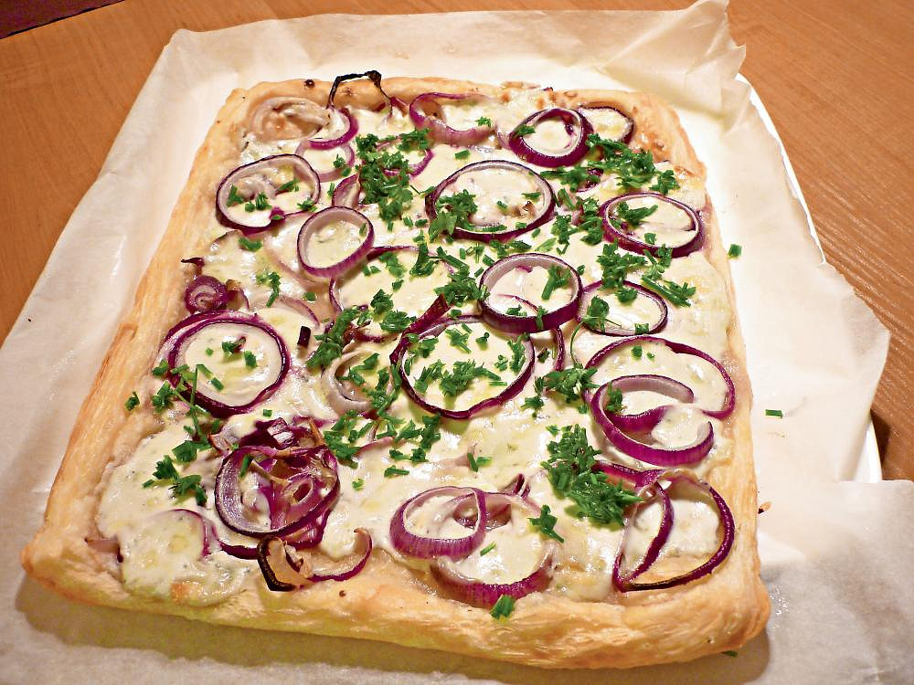 Koláč s balkánem a s červenou cibulí