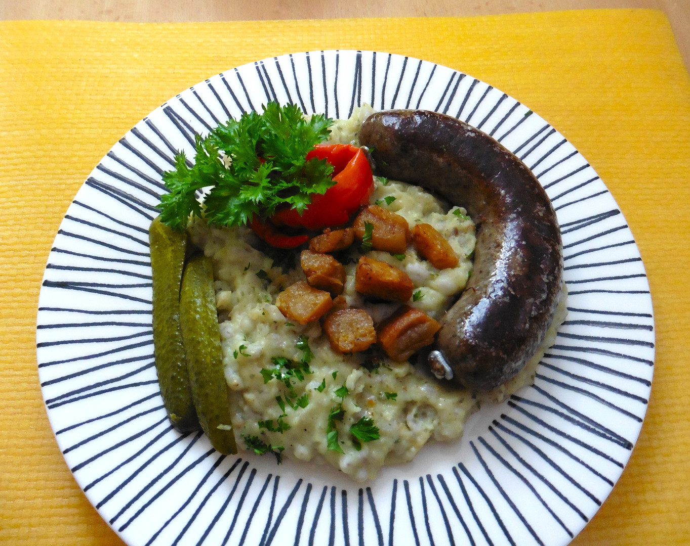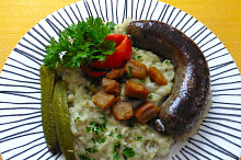 Nastavovaná kaše s opečenou jitrničkou