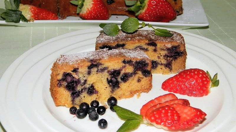 Snadné řezy na běžný den i jako pohoštění na návštěvu o víkendu. Jednoduché lité těsto, na jehož suroviny není potřeba ani váha, vše odměříme hrnkem. Povrch moučníku pak pokryje drobné ovoce, třeba šťavnaté borůvky.
