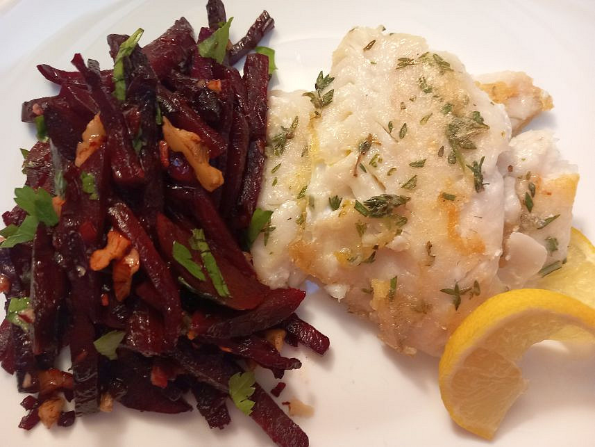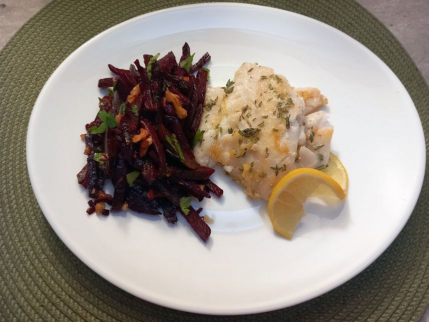 Domů - Recepty - Teplý salát z červené řepy s rybou