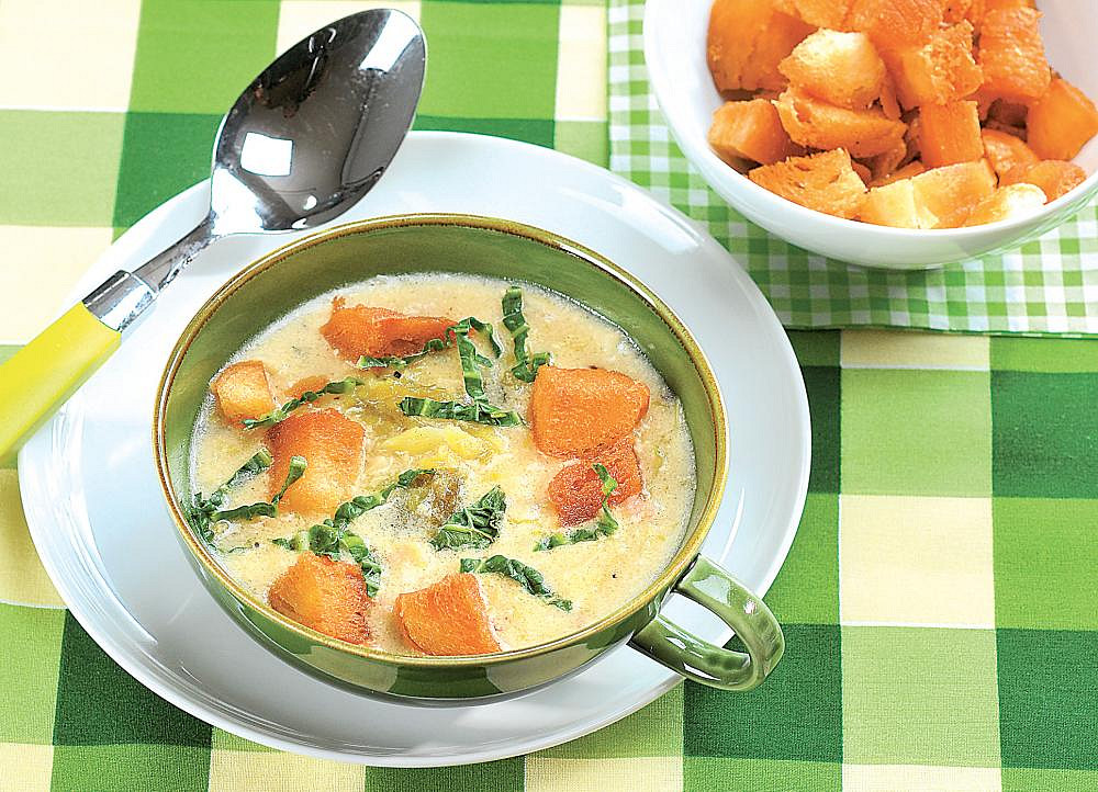 Krok 5: Kapustovou polévku podáváme s opečenými krutonky.