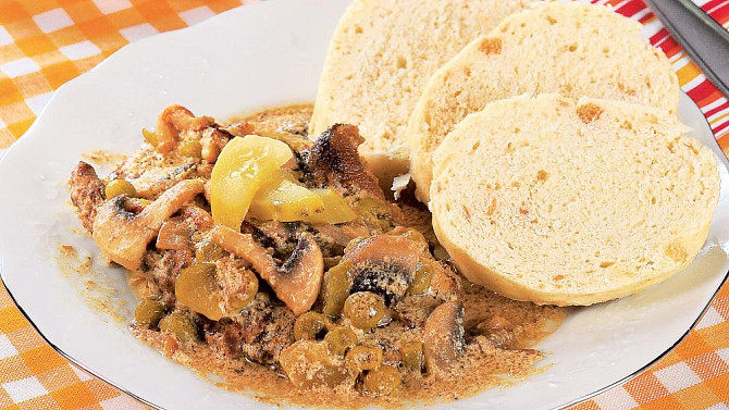 Krok 9: Jako přílohu podáváme houskový knedlík, ale vhodná je i rýže nebo těstoviny.