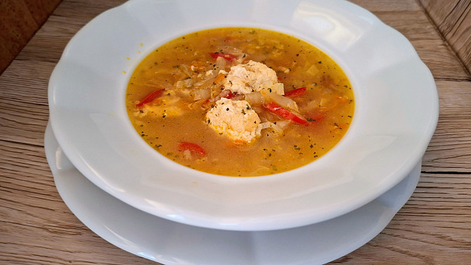 Zeleninová polévka s čínským zelím a parmazánovým kapáním