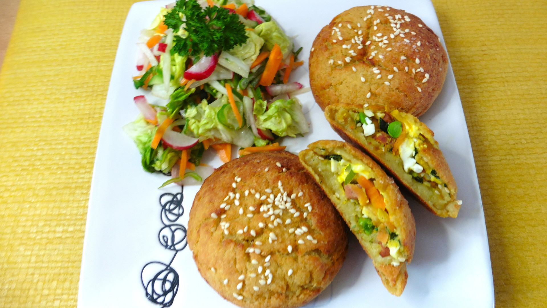 Hledáte něco rychlého na oběd či večeři a zároveň chcete do jídelníčku dostat bílkoviny a více zeleniny? Pak právě pro vás jsou určeny tyto pečené bramborové bochánky plněné směsí z vajíček a zeleniny.