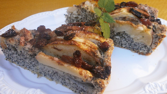 Jste-li příznivci máku, jablek a skořice, pak musíte vyzkoušet tento litý koláč. Příprava těsta je velmi jednoduchá. Stačí jen vše smíchat dohromady a vlít do připravené koláčové formy. Povrch koláče zdobíte jablky, ořechy a rozinkami.