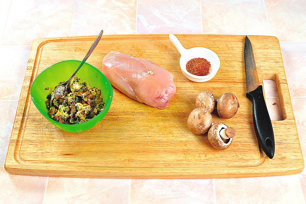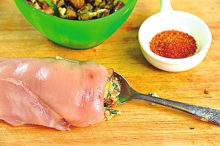 Kuřecí prsíčko s žampionovou nádivkou a bramborovou kaší
