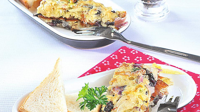 Krok 6: Omeletu podáváme s toustovým chlebem nebo jakýmkoliv pečivem.