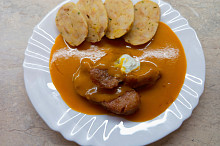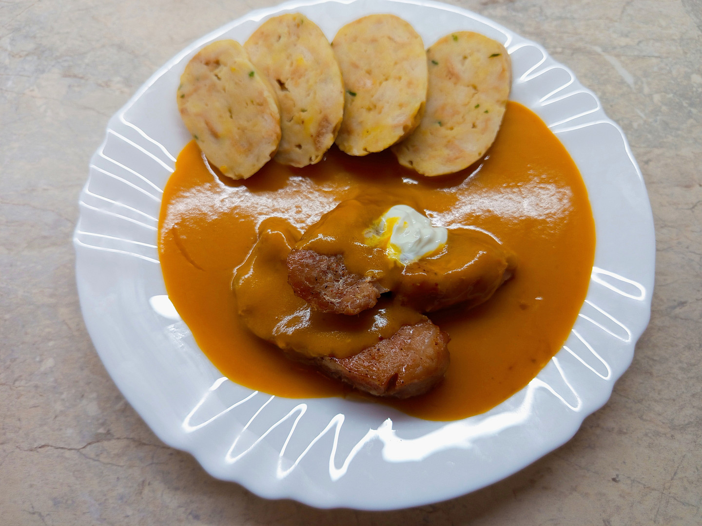 Krémová dýňová omáčka s kořenovou zeleninou a zakysanou smetanou