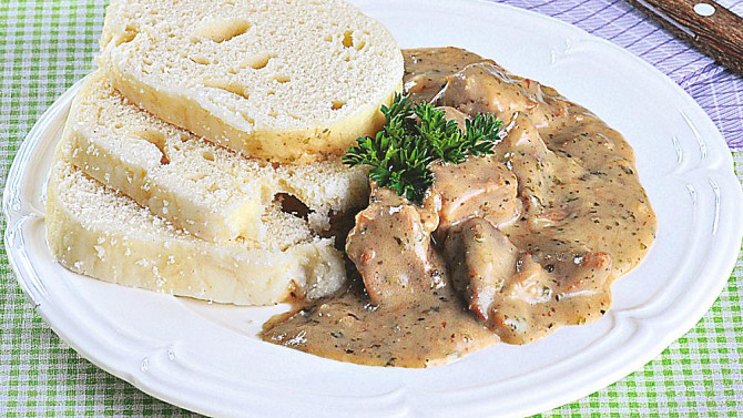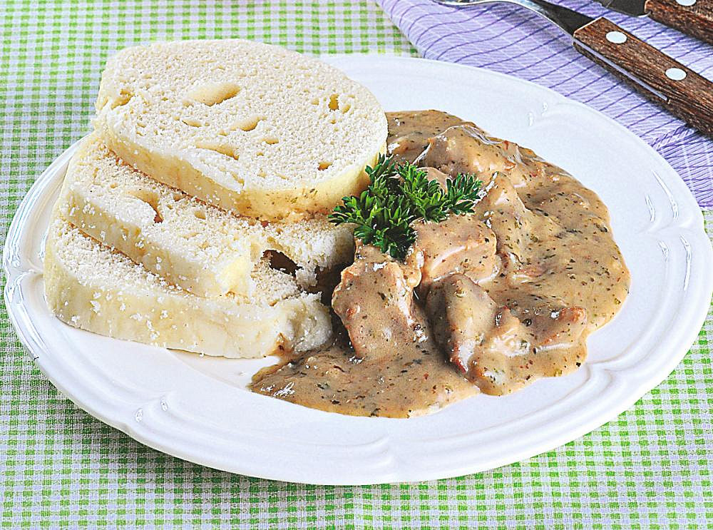 Zadělávané vepřové kostky s majoránkou a knedlíkem