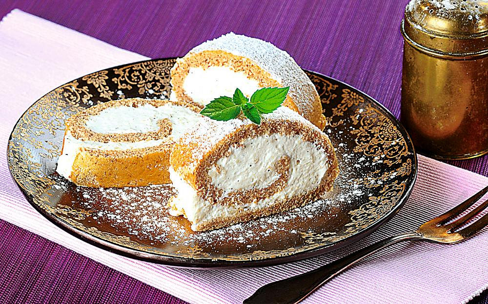 Úžasně kyprá a lahodná ořechová roláda je bohatě naplněná nadýchanou šlehačkou. K pevné a husté šlehačce nám dopomůže želatinový ztužovač. Pak už stačí jen potřít piškotovou roládu, stočit a nechat zatuhnout.