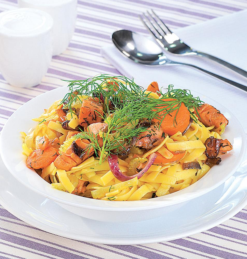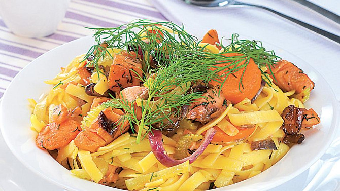 Nudle s lososem a koprem