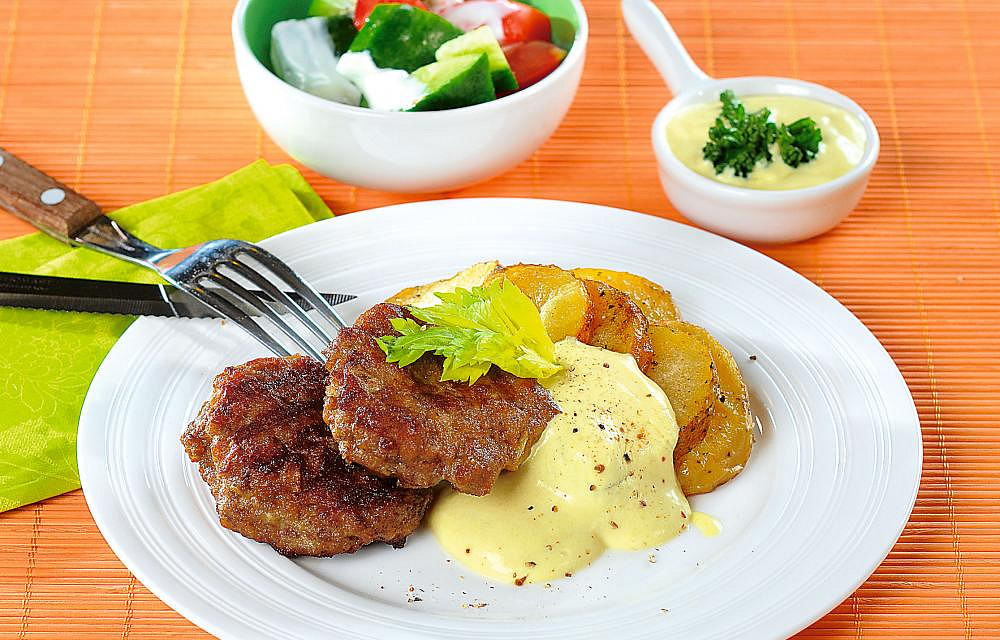 Ačkoliv se může zdát, že příprava rodinného oběda je složitá, opak je pravdou. Připravte si sekané biftečky s pečenými bramborami a smetanovo-hořčičnou omáčkou. Snadný pokrm, který se skvěle hodí i jako nedělní oběd.